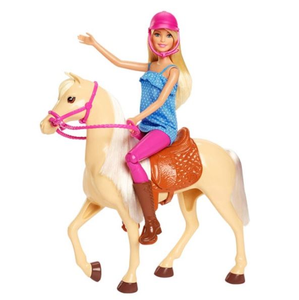Papusa Barbie este pregatita de noi aventuri cu acest calut. Incepe noi sedinte de echitatie sau porneste la trap intr-o mica aventura impreuna cu Barbie si calutul ei. Calul este echipat cu sa si capastru detasabil iar Barbie poarta un costum de echitatie casual. Celor mici le va placea sa calareasca impreuna cu acesti doi prieteni si sa descopere lumea deoarece cu Barbie poti fi orice iti doresti.Specificatii