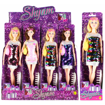 Jucarie papusa + accesorii (perie, geanta) MegaCreative Shyam, 29cm, 524670, 8x33x5cm, pvc, +3 ani