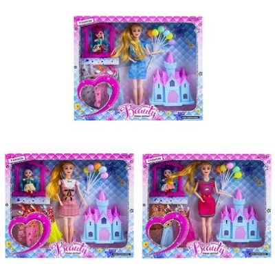 Cu siguranta distractia este asigurata cu aceasta papusa si accesoriile din cutie Jucaria incurajeaza jocurile de rol stimuleaza motricitatea indemanarea si imaginatia copiilor. Caracteristici - Setul ce poate deschide lumea minunata a basmului contine 1 x papusa 1 x papusica 1 x leagan 1x castel 1x set baloane 3 rochite care completeaza garderoba papusii. - Mainile picioarele si capul papusii pot fi miscate iar incheieturile mainilor sunt flexibile. - Jucaria este realizata din material plastic si textil nu dauneaza sanatatii non-toxic. - Pe langa faptul ca este grozav si distractiv jocul cu acest produs este o modalitate excelenta de a dezvolta creativitatea imaginatia si dexteritatea. - Jucaria este usor de transportat datorita manerului din plastic al cutiei. Inaltime papusa 29 cm Inaltime papusica 9 cm Ambalajul trebuie indepartat recuperat si aruncat de catre un adult inainte de a se da spre utilizare copilului. Nu lasati ambalajele produselor la indemana copiilor. Se recomanda utilizarea produsului sub supravegherea unui adult. Produsul poate contine piese mici care se pot inghiti sau inhala de cei mici existand pericolul de sufocare sau nu este potrivita copiilor mai mici de 3 ani. Pastrati instructiunile si etichetele pentru referinte viitoare. Pastrati produsul departe de foc si nu il lasati in preajma temperaturilor ridicate si a umiditatii. Datorita masurarii manuale a produsului poate exista o diferenta minora fata de dimensiunea reala a produsului. Nerecomandat copiilor cu varsta mai mica de 3 aniSpecificatii