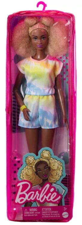 Fashionistas este una dintre cele mai indragite colectii Barbie oferind o gama larga de papusi cu diferite stiluri si accesorii introducand conceptul de ersitate si acceptare in randul fetelor. Aceasta colectie include papusi cu diferite tipuri de siluete tonuri de piele culori de ochi si par astfel fetele nu se vor plictisi niciodata si isi vor gasi papusa asemanatoare stilului lor. Papusile au stilul lor propriu inspirat de ultimele tendinte din moda si vin cu o tinuta completa incaltaminte si accesorii fabuloase. Hainutele sunt confectionate astfel incat se pot potrivi oricarei papusi din gama Fashionistas. Descopera fiecare papusa Barbie din colectia Barbie Fashionistas si exploreaza lumea minunata a modei Papusa cu par blond afro este imbracata intr-o salopeta cu un imprimeu interesant cu albastru si roz. In picioare are o pereche de sneakersi albi.Specificatii