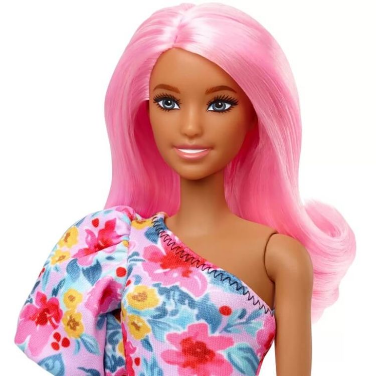 Fashionistas este una dintre cele mai indragite colectii Barbie oferind o gama larga de papusi cu diferite stiluri si accesorii introducand conceptul de ersitate si acceptare in randul fetelor. Aceasta colectie include papusi cu diferite tipuri de siluete tonuri de piele culori de ochi si par astfel fetele nu se vor plictisi niciodata si isi vor gasi papusa asemanatoare stilului lor. Papusile au stilul lor propriu inspirat de ultimele tendinte din moda si vin cu o tinuta completa incaltaminte si accesorii fabuloase. Hainutele sunt confectionate astfel incat se pot potrivi oricarei papusi din gama Fashionistas. Descopera fiecare papusa Barbie din colectia Barbie Fashionistas si exploreaza lumea minunata a modei Papusa cu par roz este imbracata intr-o rochie cu imprimeu floral si are o pereche de ochelari de soare. Are un picior protetic si o pereche de adidasi blue.Specificatii