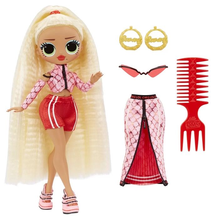 L. O. L. Surprise O. M. G. papusile de moda revin in scena pline de farmec si cu coafuri superbe salut-o pe Swag sora mai mare a personajului superstar M. C. Swag Swag captiveaza multimea cu stilul ei sic si personalitatea cool care completeaza perfect stilul prietenelor ei ii place sa mearga cu valul si sa fie relaxata Pregatita sa iasa pe podium Tinuta lui Swag contine un top roz cu fermoar cu maneci cu model asortate si o fusta lunga superba cu fermoar care poate fi deschis pentru a dezvalui un material rosu pe dedesubt care ii completeaza perfect tinuta Aceasta relansare a lui Swag prezinta trasaturile ei uimitoare parul coafat si tinuta impresionanta. Papusa contine numeroase articulatii pentru o multime de posibilitati de joaca. Transformarea stilului Descopera surpriza suplimentara si transforma-i instantaneu tinuta scotandu-i fusta lunga pentru a dezvalui pantalonii scurti rosii draguti de dedesubt creand un aspect complet diferit Unboxing cu multiple surprize include o papusa de moda O. M. G. tinuta completa ochelari de soare la moda cercei eleganti pantofi si un pieptene de par Joaca-te cu toata gasca Colectioneaza toate cele 4 re-lansari ale personajelor indragite L. O. L. Surprise O. M. G. papusi de moda Swag Neonlicious Lady Diva si Royal Bee Sfat Mainile sunt detasabile pentru o imbracare usoara. Cadoul perfect pentru copiii cu varsta de peste 3 aniSpecificatii