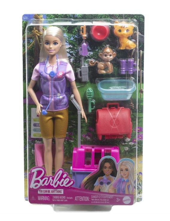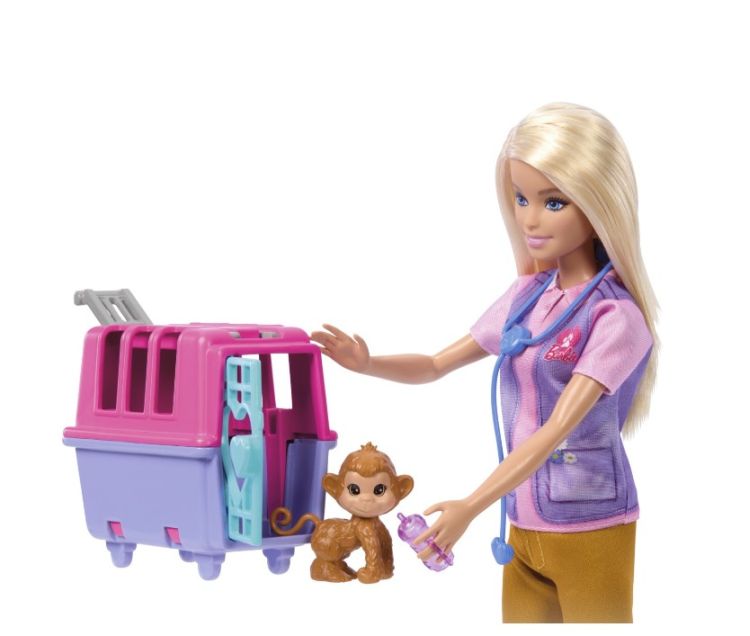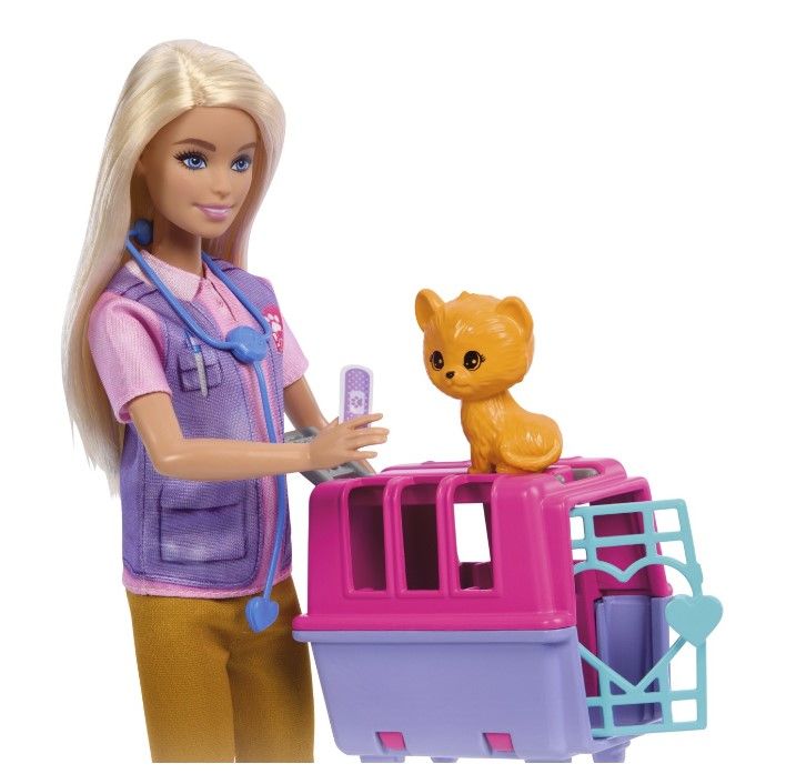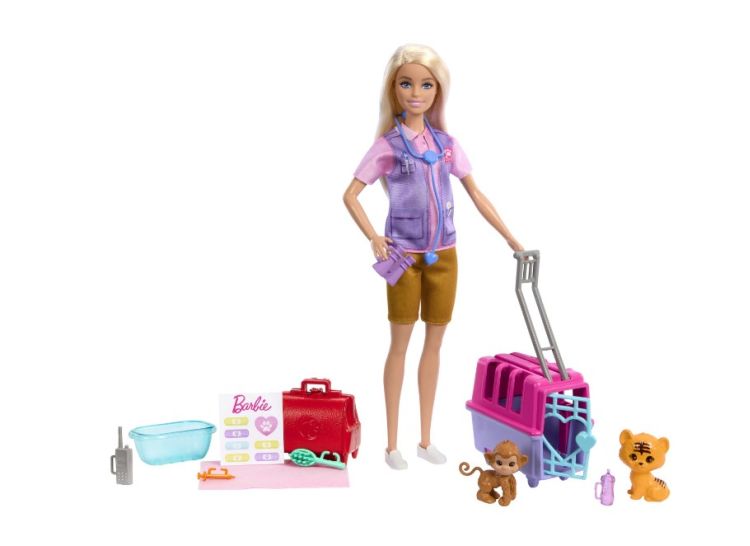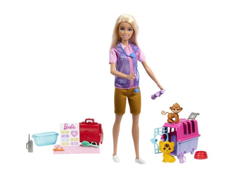 Papusa Barbie Animal Rescue este pregatita sa salveze si sa ingrijeasca doi pacienti adorabili un pui de maimuta si un pui de tigru. Cu ajutorul numeroaselor accesorii incluse precum caruciorul pentru animale si trusa de veterinar papusa Barbie le ofera copiilor sansa de a crea aventuri captivante dezvoltandu-si imaginatia si sa experimenteze diferite roluri. Cu papusa Barbie Animal Rescue cei mici pot explora momente pline de emotie in care devin eroi pentru animalele lor de plus preferate. Este important de mentionat ca papusa nu sta singura incurajand astfel interactiunea si implicarea activa a copiilor in lumea lor imaginara.Specificatii