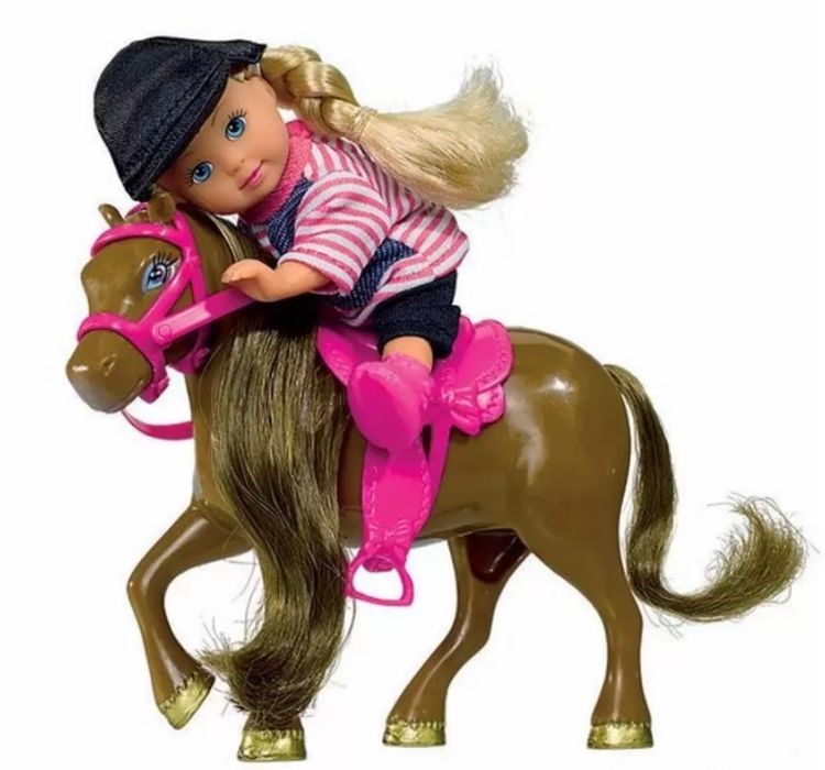 Evi este o papusa foarte dragalasa care e intotdeauna la moda si careia ii place la nebunie culoarea roz. Evi Love cu calut arata superb in costumul ei fantastic de echitatie si este destul de clar ca ii place foarte mult sa calareasca. Fiind un calaret pasionat ii place sa se urce in saua calutului si sa porneasca in noi aventuri.Specificatii