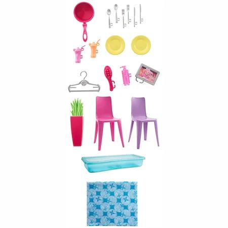 Casa are o bucatarie, dormitor, baie si zona de piscina, accesorii tematice si caracteristici distractive. In bucatarie, o chiuveta si un stovetop ajuta la petrecerea povestilor de gatit, iar un bar de pe insula este perfect pentru mese. Dormitorul are un pat care se rastoarna si un dulap care poate tine imbracaminte. In baie, o toaleta are un capac de lucru pentru o atingere realista. In afara, piscina poate fi umpluta cu apa pentru a face o stralucire in timp ce "luminile" colorate atarna de terasa.