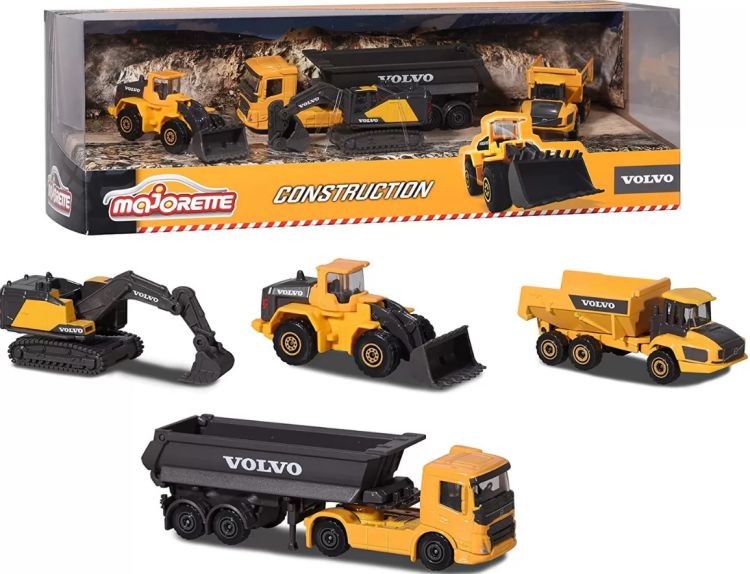 Vehicule de constructie Majorette Volvo - duceti-va santierul de constructie de jucarii la urmatorul nivel Copiii mici sunt fascinati de vehiculele de constructii. Ideal ca o jucarie sau ca obiect de colectie acest set cadou Volvo din patru piese este garantat ca va face visurile copilului dumneavoastra sa devina realitate Conceput pentru copiii cu varsta de peste 3 ani vehiculele de constructie colorate sunt un must-have pentru toti colectionarii de vehicule si fanii Volvo. Excavatorul pe senile incarcatorul pe pneuri autobasculanta articulata si camionul exclusivist cu basculanta de 13 cm sunt completarea perfecta pentru santierul dumneavoastra de jucarii. Masinile de jucarie din metal sunt garantate sa va aduca multi ani de placere si dispun de roti rotative pentru manevrare usoara. Datorita pieselor mobile vehiculele pot fi folosite intr-o gama larga de scenarii de joaca imaginare atat in interior cat si in exterior.