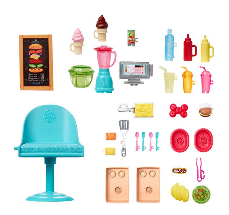 Cu acest set de joaca Barbie este pregatita sa exploreze noi destinatii si cariere. Ajut-o pe Barbie sa pregateasca cu mare atentie fiecare comanda de cartofi prajiti sau smoothie.