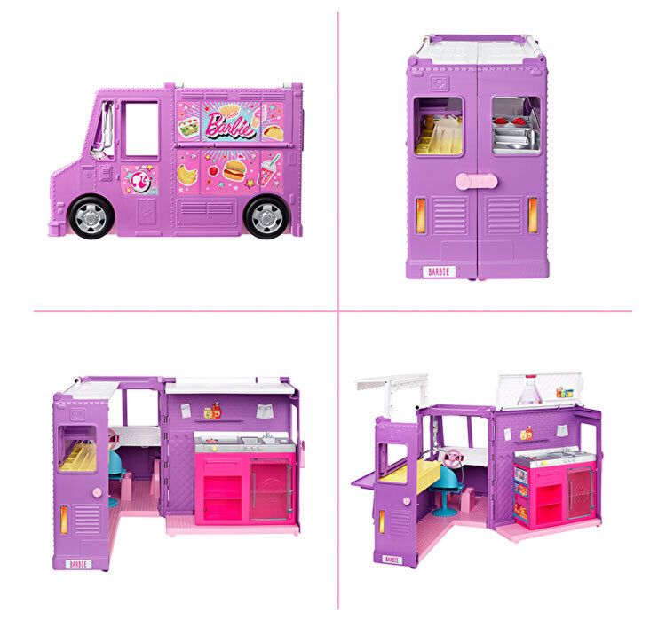Rulota cu mancare vine cu peste 30 de accesorii pentru povesti, inclusiv un meniu, vase, ustensile, tavi de servit, farfurii, blender, produse alimentare, condimente si scaun pentru un client infometat! Vehiculul masoara peste 45 de cm lungime.