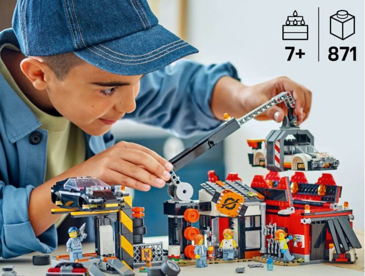 Jucarie cu lucratori in reciclare pentru copii de 7 ani si mai mari – Introdu-i pe copii in lumea esentiala a reciclarii cu atractivul set LEGO® City Cimitir de masini vechi