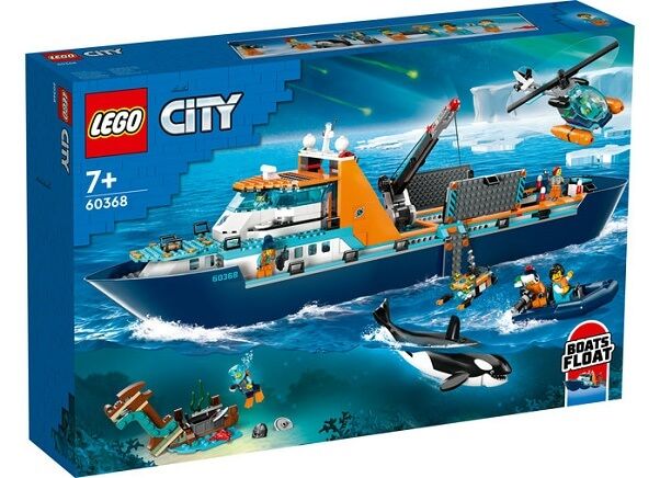 Aventuri palpitante te asteapta in impresionantul set LEGO City Nava de explorare arctica 60368 . Aceasta ambarcatiune plutitoare uriasa abunda in detalii realiste care dau nastere unor misiuni de explorare imaginare. Setul premium include si un elicopter o barca gonflabila o drona subacvatica si o epava vikinga plus un cufar cu comori 7 minifigurine si o figurina orca. Constructie digitala distractiva pentru copii de 7 ani Aplicatia LEGO builder iti ghideaza copilul intr-o aventura de constructie intuitiva cu instrumente care ii permit sa apropie si sa roteasca modelele in 3D sa-si urmareasca progresul de constructie si sa exploreze si sa salveze seturi virtuale. Aventuri fara limite Copiii cresc inconjurati de vehicule si masini uimitoare iar seturile de constructie LEGO City le permit sa exploreze indeaproape aceste modele realiste insotite de personaje amuzante care inspira joaca fantezista fara limite. Combina acest set cu altele din gama LEGO City pentru si maimulta distractie.Specificatii