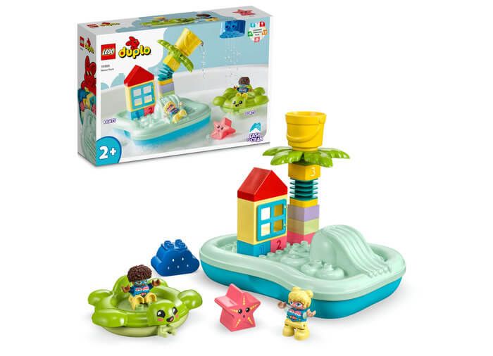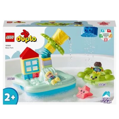 Cauti cea mai buna jucarie de baie pentru copii de 2 ani LEGO DUPLO Orasul meu Parc acvatic 10989 transforma sesiunile de baie in momente distractive de invatare in care copiii exploreaza acest parc acvatic colorat. Acest set le face cunostinta micutilor iubitori de apa cu numerele si le dezvolta abilitatea de a turna lichid. In plus este usor de curatat si de depozitat. Jucarie interactiva cu multe posibilitati de joaca fantezista Aceasta jucarie educativa include un palmier flexibil pe care copiii il pot creste folosind caramizile cu numere 1-2-3. Copiii umplu galeata copacului cu apa pentru a stropi figurina copil. Il pot face pe micut sa se dea pe toboganul cu apa si sa pluteasca cu colacul simpatic in forma de testoasa. Prin umplerea norului copiii il fac sa verse stropi de ploaie pe toate elementele distractive. Design practic pe care parintii il vor adora Jucariile educative de baie LEGO DUPLO sunt concepute sa le permita adultilor sa-i insoteasca pe micuti intr-o calatorie vesela de explorare. Cand ora de baie se incheie acest inel plutitor se deschide astfel ca adultii il pot usca usor pentru a se asigura ca jucaria de baie e perfect curata. Jucarie educativa pentru ora de baie a copiilor - Fa un spectacol din ora de baita cu jucaria Parc acvatic 10989 un set creativ pentru micutii de 2 ani care ii invata sa recunoasca numerele si le dezvolta abilitatile motorii fine Jucarie amuzanta de construit in cadita - Aceasta jucarie de baie include o insula plutitoare si un inel in forma de testoasa un palmier flexibil cu o galeata pentru apa un tobogan-caracatita 2 figurine copii o stea de mare si nori de ploaie Jucarie care dezvolta imaginatia - Copiii capata abilitati si invata numerele in timpul baitei pe cand suprapun caramizi pentru a face copacul sa creasca si exploreaza alaturi de figurina de jucarie dotarile unui parc acvatic Cadou pentru prescolari - Un cadou interactiv pentru copiii de 2 ani si mai mari de ziua de nastere la ocazii speciale sau oricand Construind distractia la ora de baie - Acest set de jucarie masoara 22 cm in inaltime 25 cm in latime si 19 cm in adancime si face parte dintr-o gama de jucarii de baie LEGO DUPLO vandute separat Instructiuni digitale de constructie - Aplicatia LEGO Builder prezinta o versiune digitala a instructiunilor de constructie incluse in set Jucarii pentru copii mici care fac invatarea distractiva - Seturile de jucarii LEGO DUPLO sunt concepute de experti pentru a-i ajuta pe micuti sa atinga etape de dezvoltare si sa-si dezvolte imaginatia in timp ce sunt angrenati in joaca creativa Calitate constanta - Jucariile LEGO DUPLO respecta standardele stricte din domeniu pentru a fi usor de apucat asezat si desfacut de micuti. Se intampla asa din 1969 Siguranta garantata - Caramizile si piesele din seturile LEGO DUPLO sunt analizate si testate la maximum pentru a garanta ca respecta standardele globale exigente de siguranta. Atentie Contraindicat copiilor mai mici de 3 ani. Jucaria produsul poate contine piese mici care se pot inghiti sau inhala existand pericolul de sufocare. Nu lasati ambalajele jucariilor produselor la indemana copiilor. Indepartati orice ambalaj al jucariei produsului inainte de a da jucaria produsul copilului. Va rugam sa supravegheati copilul in timp ce se joaca foloseste acest produs. Pastrati instructiunile si etichetele pentru referinte viitoare. Pastrati jucaria produsul departe de foc feriti jucaria produsul de temperaturi ridicate si umiditate.Specificatii