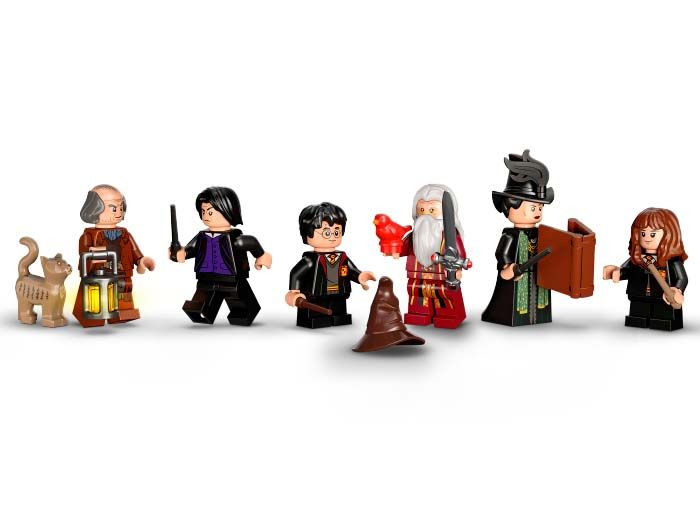Acest set Hogwarts include numeroase zone care inspira joaca creativa, fiecare cu detalii autentice di nseria de filme. Setul include 6 minifigurine: Harry Potter, Hermione Granger, Albus Dumbledore, Severus Snape, Argus Filch si Madam Pince. Accesorii familiare includ Mantia de Invizibilitate, Pensivul, Sabia lui Gryffindor, Jobenul Magic si un pui Fawkes care rasare din cenusa.