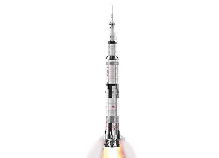 Expune si joaca-te pe roluri cu acest maiestuos model NASA Apollo Saturn V din caramizi LEGO, inalt de un metru. Plin de detalii autentice, acesta are 3 trepte detasabile de racheta, incluzand a treia treapta S-IVB cu modulul lunar si modulul de comanda ce orbiteaza luna. Setul include de asemenea 3 stative pentru a expune modelul pe orizontala, 3 microfigurine astronaut, noi din iunie 2017, pentru joaca pe roluri ce recreeaza aterizarile pe luna, plus o brosura despre misiunile Apollo cu echipaj, si fanii designeri ai acestui set educational LEGO Ideas plin de inspiratie.