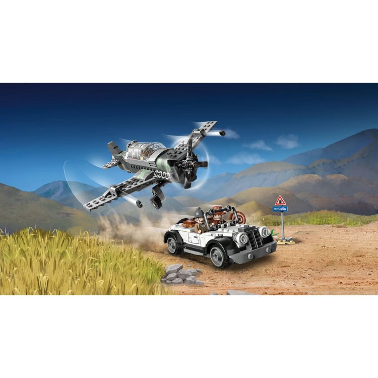 - Set de joc cu masina si avion din Indiana Jones - In setul LEGO Urmarire cu avionul de vanatoare (77012), copiii dispun de tot ce le trebuie pentru a retrai actiunea din filmul Indiana Jones si ultima cruciada