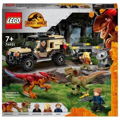 Intra in rolul personajelor din filmul Jurassic World Dominion urmarind dinozauri cu acest set Transportul de Pyroraptor si Dilophozaur 76951 . Camioneta de teren are loc pentru 2 minifigurine si e echipata cu un detector de dinozauri detasabil si o remorca detasabila cu o cusca pentru un dinozaur. Setul include si 3 minifigurine LEGO - Ian Malcolm Dr. Ellie Sattler si un paznic cu o arma cu tranchilizant - plus figurine dinozauri Pyroraptor si Dilophozaur. Atentie Contraindicat copiilor mai mici de 3 ani. Jucaria produsul poate contine piese mici care se pot inghiti sau inhala existand pericolul de sufocare. Nu lasati ambalajele jucariilor produselor la indemana copiilor. Indepartati orice ambalaj al jucariei produsului inainte de a da jucaria produsul copilului. Va rugam sa supravegheati copilul in timp ce se joaca foloseste acest produs. Pastrati instructiunile si etichetele pentru referinte viitoare. Pastrati jucaria produsul departe de foc feriti jucaria produsul de temperaturi ridicate si umiditate.Specificatii