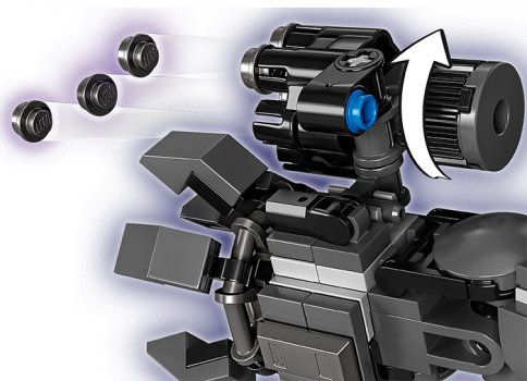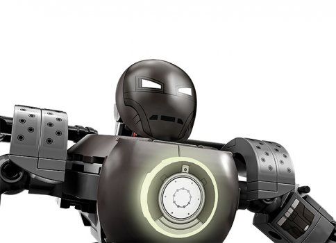 Copiii pun o minifigurina in interiorul robotului Iron Monger, apoi o manevreaza in lupta.
