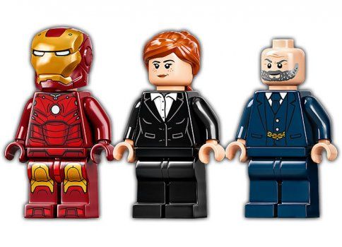Include minifigurinele Iron Man, Obadiah Stane si Pepper Potts.