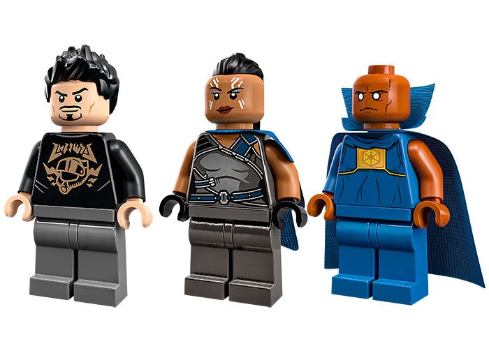 Include minifigurinele Tony Stark, Valkyrie si The Watcher.