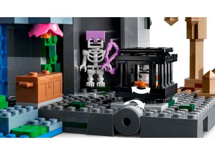 Acest set de joc adaptabil ii aduce fata in fata pe un explorator speolog si schelete ostile intr-un mediu cu biomuri multiple care include o pestera cu stalactite si stalagmite o pestera luxurianta cu tufisuri plante agatatoare apa lut si torte si o temnita a scheletelor unde se afla un reproducator rotitor de schelete. Actiunea interactiva include impingerea unei stalagmite pentru a face pietrele sa se rostogoleasca peste mobii ostili si rotirea unui perete pentru a dezvalui un al treilea schelet. Ca arme setul contine o arbaleta si un tarnacop. Exista si un cufar cu un disc muzical paine si un os. Setul are tot ce-i trebuie unui jucator de Minecraft pentru a se bucura de nenumarate aventuri creative Foloseste-ti tarnacopul ca sa explorezi stalagmitele si stalactitele din pestera cu pietre picuratoare. Ai grija sunt 2 schelete in temnita de dedesubt impinge o stalagmita ca sa faci pietrele sa se prabuseasca peste mobii ostili. Apoi coboara pe frunzele picuratoare in pestera luxurianta ca sa infrunti scheletele cu arbaleta. Dar atentie o rotire a reproducatorului face un alt schelet sa apara imbracat in armura fermecata Set LEGO Minecraft plin de actiune cu 3 biomuri si functii distractive de actionat Un explorator si 3 schelete in pestera cu pietre picuratoare in pestera luxurianta si in temnita Prezinta o functie de prabusire a pietrelor si un reproducator de schelete cu perete rotativ Cadou adaptabil pentru copiii de 8 ani si mai mari care adora sa joace Minecraft Setul de joc se reconfigureaza usor si se combina cu alte seturi din gama Seturile LEGO Minecraft ofera jucatorilor un mod interactiv de a se bucura de jocul preferat Componentele LEGO respecta standardele stricte de calitate din domeniu Seturile LEGO respecta standardele globale stricte de siguranta. Atentie Contraindicat copiilor mai mici de 3 ani. Jucaria produsul poate contine piese mici care se pot inghiti sau inhala existand pericolul de sufocare. Nu lasati ambalajele jucariilor produselor la indemana copiilor. Indepartati orice ambalaj al jucariei produsului inainte de a da jucaria produsul copilului. Va rugam sa supravegheati copilul in timp ce se joaca foloseste acest produs. Pastrati instructiunile si etichetele pentru referinte viitoare. Pastrati jucaria produsul departe de foc feriti jucaria produsul de temperaturi ridicate si umiditate.Specificatii