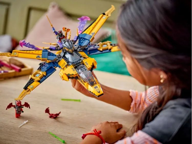 Baietii si fetele de 8 ani si mai mari pot recrea scene din sezonul 3 al serialului TV NINJAGO®: Ascensiunea dragonilor cu Superavionul cu reactie al lui Ras si Arin (71833). Incluzand un avion cu reactie cool, cu o drona detasabila si o capsula de salvare, plus minifigurinele Arin, Ras si Razboinic dragonian si un model de dragon mic, acest incredibil set de constructie LEGO® contine tot ce au nevoie copiii pentru a se bucura de nenumarate ore de joaca pe roluri.