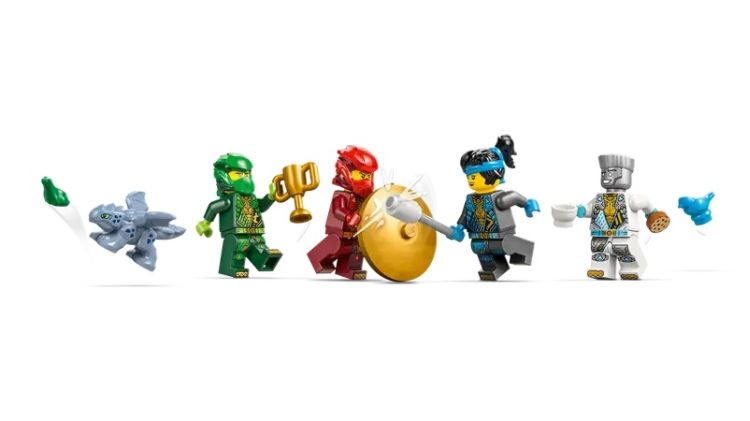 Acest set LEGO include 4 minifigurine NINJAGO: Zane, Nya, Kai si Lloyd, plus un dragon Bebe Riyu, astfel incat copiii sa poata interpreta pe roluri scene de actiune ninja. Minifigurinele pot fi asezate pe 2 placi rotative pentru batalii spectaculoase, iar pentru un plus de valoare de joc exista o gama larga de accesorii: arme ninja, intre care 2 sabii si 3 toiege, precum si un ciocan, o pasare, o broasca, un trofeu, o prajitura si o scrisoare.