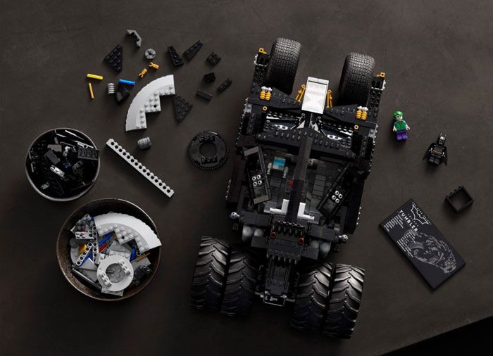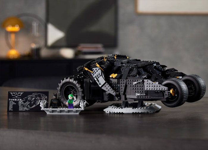 Impresionantul Tumbler de construit si expus din trilogia Dark Knight a filmelor Batman include un acoperis cu deschidere ce ofera acces la scaunele soferului si pasagerilor si la panoul de comanda. Minifigurinele Batman si Joker sunt incluse cu un stativ. Avand o baza robusta pentru a expune modelul finalizat in pozitia cea mai favorabila, reproducerea Tumbler-ului va oferi satisfactii mult timp dupa ce activitatea practica s-a incheiat.