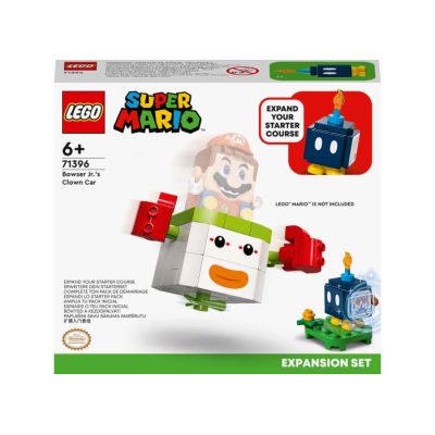 Decoleaza pentru mai multa actiune LEGO Super Mario cu Setul de extindere Clovn-mobil Bowser Jr (71396) pentru copii de 6 ani si mai mari. Consta dintr-o versiune din caramizi a Clovn-mobilului junior, plus o jucarie figurina LEGO Bob-omb pe care copiii le pot adauga la Setul de baza. Asaza-l pe LEGO Mario si/sau pe LEGO Luigi (figurinele nu sunt incluse) in Clovn-mobilul junior si calatoreste in zbor pentru a colecta monede digitale. (Nota: Setul de baza 71360 sau 71387 este necesar pentru jocul interactiv.)