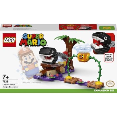 Constructorii pot adauga un nivel provocator Jungla de sifon la universul LEGO Super Mario cu acest Set de extindere Intalnirea din jungla a lui Chain Chomp (71381). O jucarie cadou excelenta pentru copiii cu initiativa, include figurinele Bramball si Chain Chomp pe care LEGO Mario (figurina nu este inclusa) trebuie sa le invinga, o platforma cu salturi pentru a-l dobori pe Chain Chomp si a-l da la o parte, si un Bloc de monede ce ofera jucatorilor monede digitale suplimentare ca recompensa. (Nota: pentru joaca interactiva ai nevoie de Setul de baza 71360.)