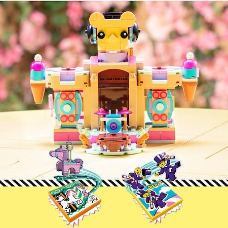 Regizeaza si interpreteaza in propriile tale videoclipuri muzicale pop cu LEGO VIDIYO (43111) Candy Castle Stage. Foloseste aplicatia pentru a da viata modelului si minifigurinei in videoclipurile tale si vezi cum cele 2 personaje interpreteaza pe scena. Roteste capetele, difuzoarele si luminile modelului tau pentru a vedea cum apar scene diferite in videoclip. Distribuie videoclipurile pe canalul social sigur. Apoi uita-te la zona cool din culise a modelului!