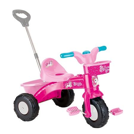 Aceasta tricicleta cu pedale este un cadou ideal pentru copii. Acesta va oferi ore de distractie si o buna activitate fizica zilnica in conditii de siguranta. Caracteristici - Constructie solida din plastic - Deplasarea se realizeaza cu ajutorul pedalelor si a ghidonului - Tricicleta dispune de maner de control pentru parinte - Scaunul este confortabil si asigura un acces facil catre ghidon si pedale - Scaun cu spatar - Cos in partea din spate si pe ghidon - Roti din plastic - Maner detasabil - Sarcina maxima 25 kg - Dimensiuni produs 64x52x50 cm Avertizare Produsul este nou si comercializat in ambalajul original al producatorului. Imaginile de pe acest site au caracter informativ. Ambalajul trebuie indepartat recuperat si aruncat de catre un adult inainte de a se da spre utilizare copilului. Nu lasati ambalajele produselor la indemana copiilor. Se recomanda utilizarea produsului sub supravegherea unui adult. Produsul poate contine piese mici care se pot inghiti sau inhala de cei mici existand pericolul de sufocare sau nu este potrivita copiilor mai mici de 3 ani. Pastrati instructiunile si etichetele pentru referinte viitoare. Pastrati produsul departe de foc si nu il lasati in preajma temperaturilor ridicate si a umiditatii. Nerecomandat copiilor cu varsta mai mica de 3 aniSpecificatii