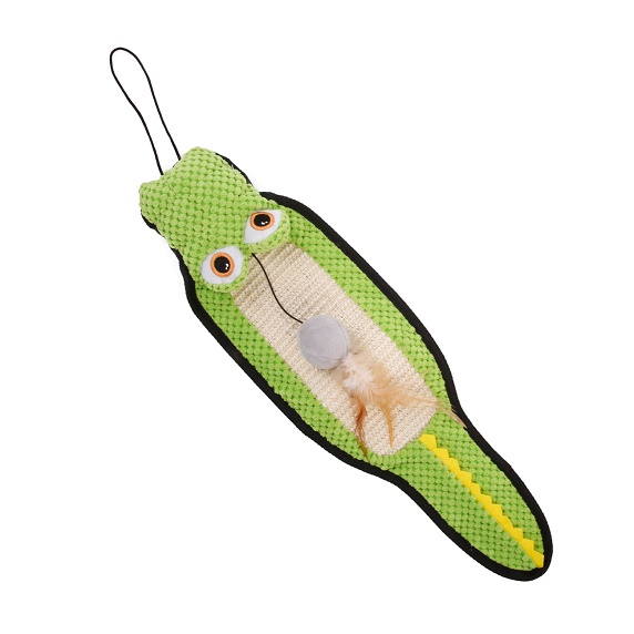 Crocodilul Scarpinici este jucaria versatila care va satisface atat nevoia de joaca a pisicii cat si de ascutirea unghiilor. Aceasta jucarie texturata, cu un sisal dublu pe spatele ei este buna pentru ranfosarea pozitiva a ascutitului ghearelor in zonele desemnate si nu pe canapea.