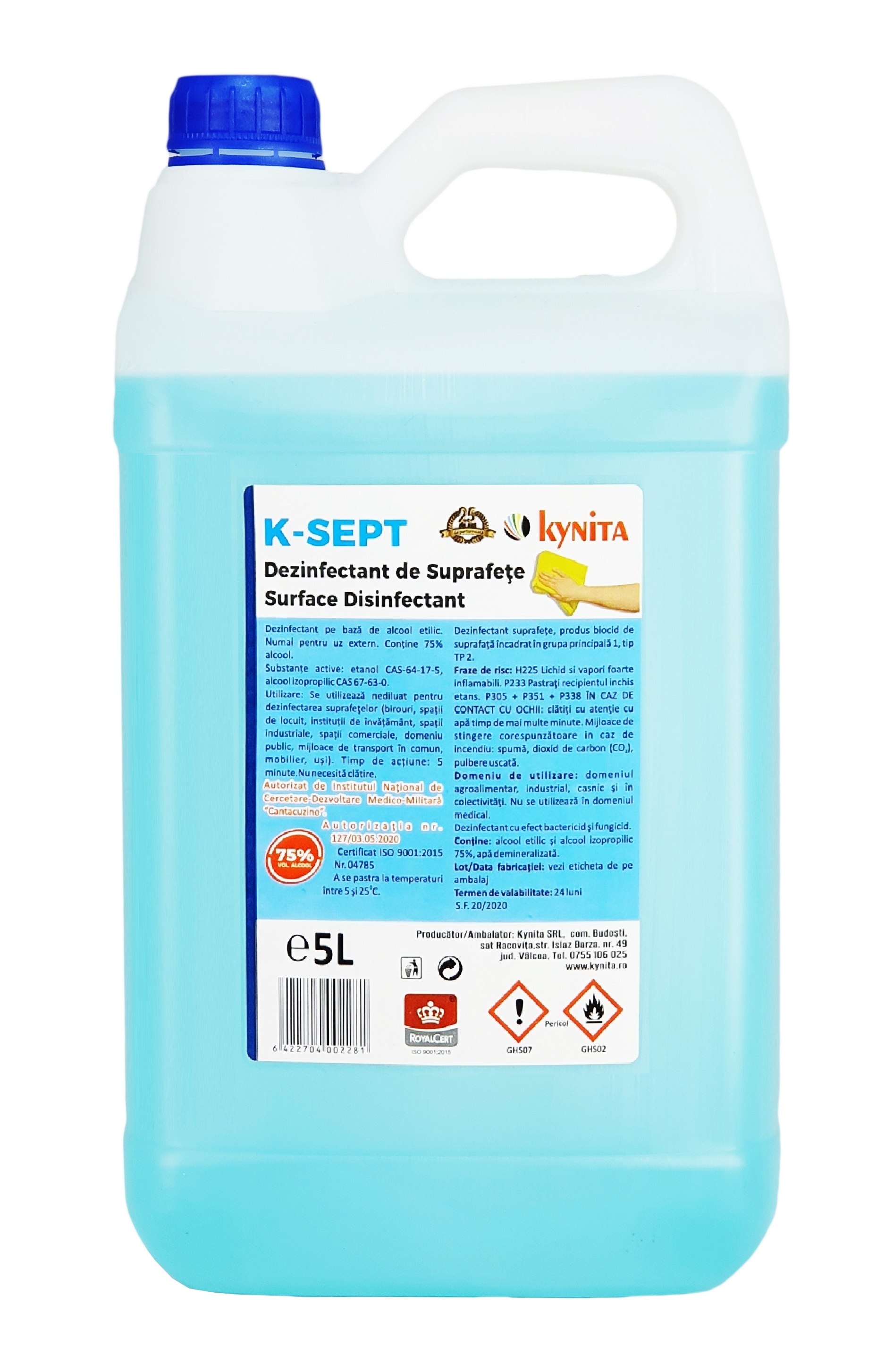K-SEPT Solutie Dezinfectant de suprafete alcool 75%, 5L