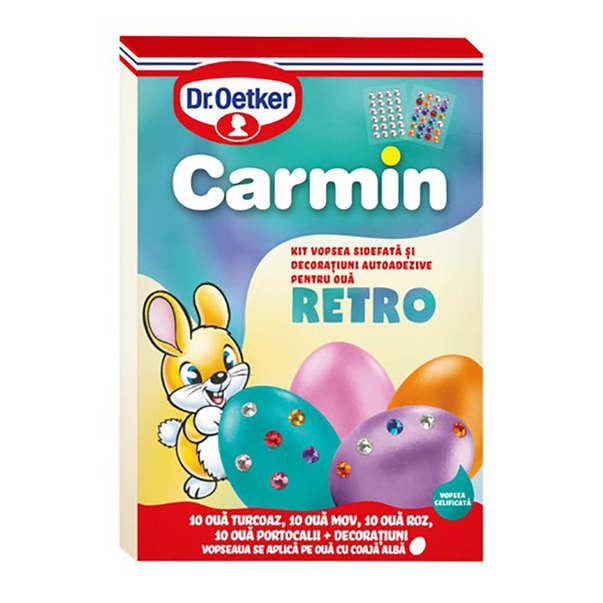Kit vopsea de oua sidefata si decoratiuni autoadezive, 40 oua, Dr. Oetker Carmin