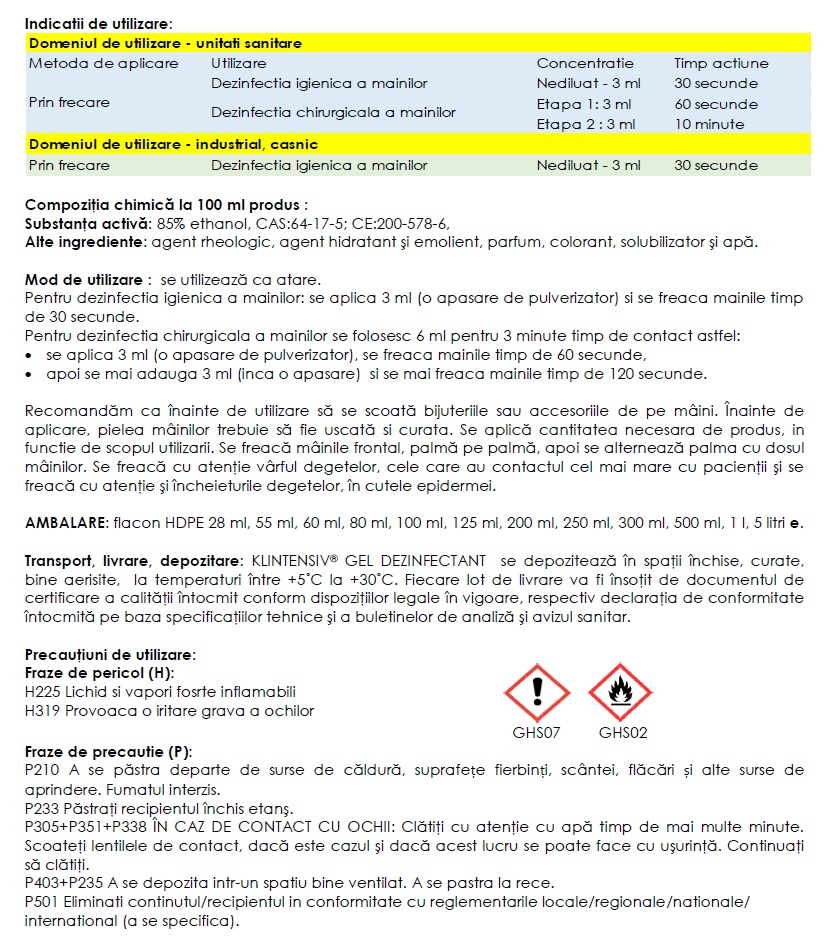 Klintensiv Gel dezinfectant pentru maini, avizat Ministerul Sanatatii, 500 ml