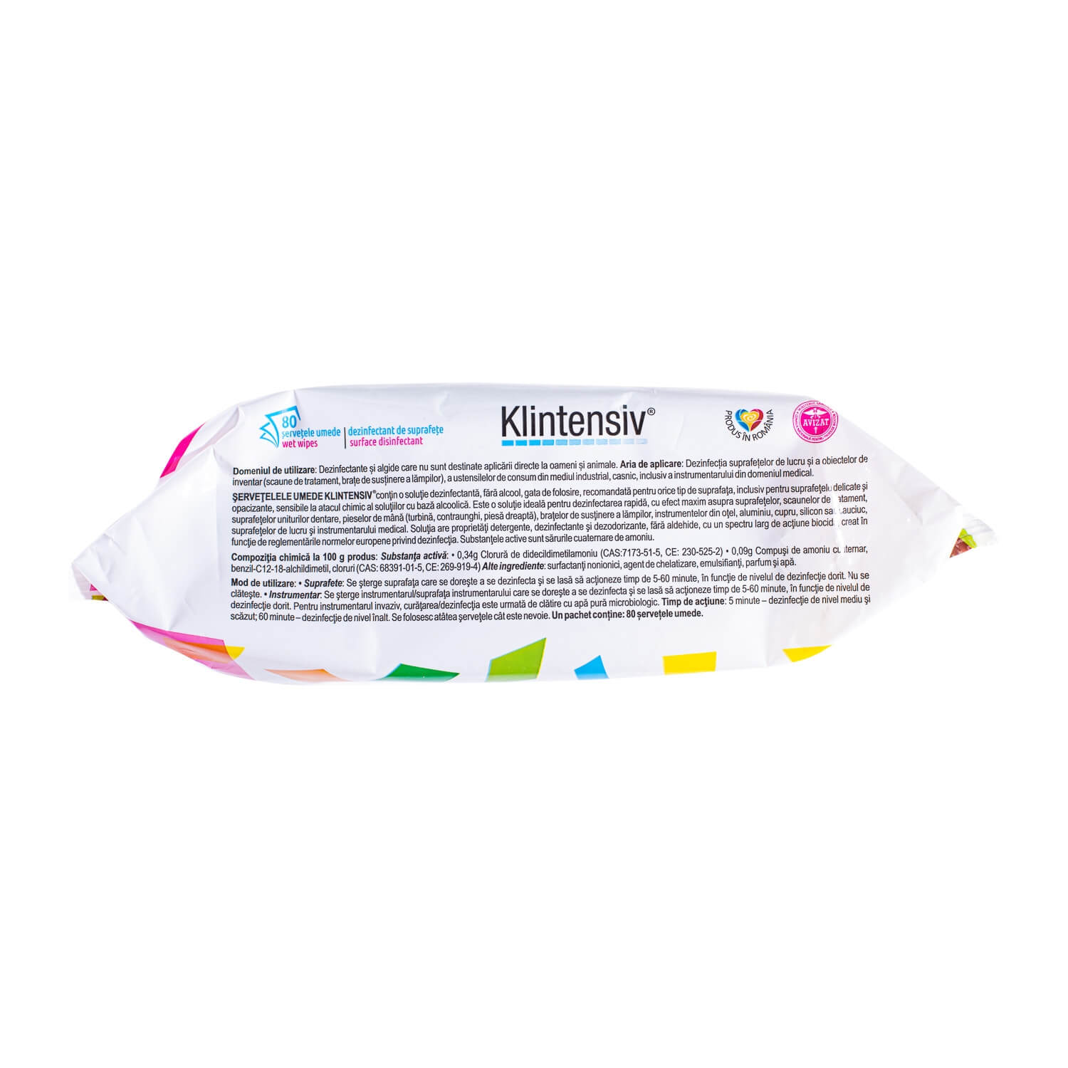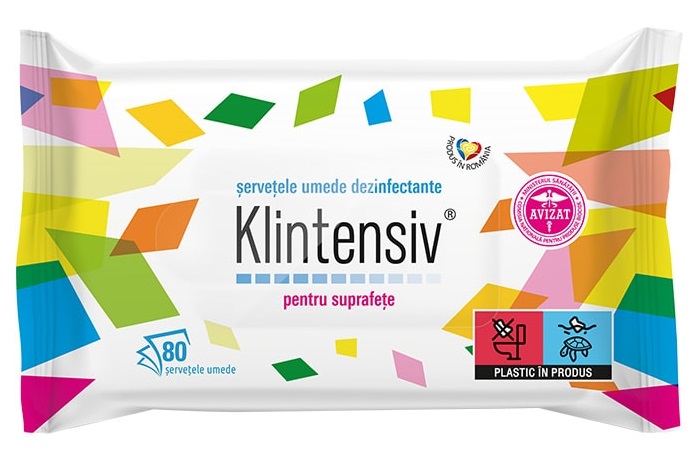 Klintensiv Servetele Umede Dezinfectante Pentru Suprafete virucid, avizat Ministerul Sanatatii 80 buc