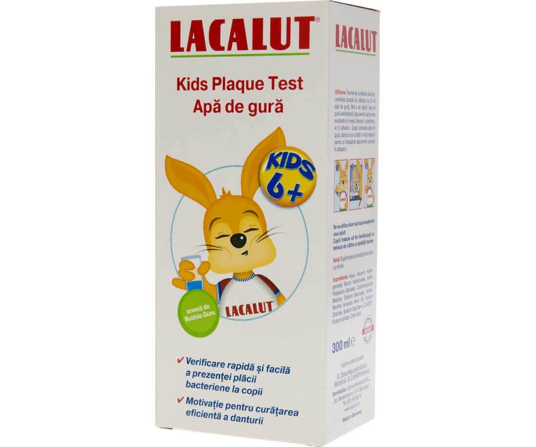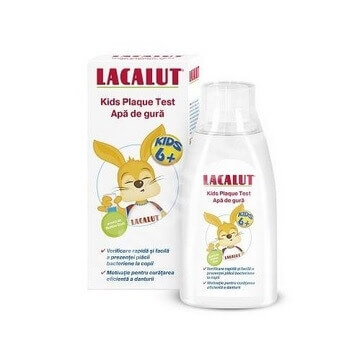 Lacalut Apa de gura pentru copii ajuta la verificarea rapida si facila a prezentei placii bacteriene la copii;