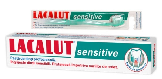 Lacalut Pasta de dinti Sensitive + periuta de dinti cadou, 75 ml