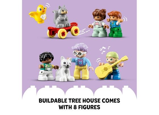 Micii aventurieri de 3 ani si mai mari descopera nenumarate moduri de a se distra in timp ce exploreaza jucaria LEGO DUPLO Casa din copac 3 in 1 10993 . Acest set ofera o multime de dotari de descoperit si o experienta de constructie creativa putand fi reconstruit in 3 moduri diferite. Invatarea pe baza de joaca dezvolta imaginatia Copiii construiesc cea mai spectaculoasa zona de joaca plina de aventuri cu 3 niveluri un tobogan super lung si un pod instabil pe care sa-l traverseze. Daca se aduna norii de ploaie modelul poate fi reconfigurat intr-o casa in copac confortabila. Al treilea model reprezinta 2 case in copac fiecare cu un tobogan si o gradina in care copiii aduna un fruct si-l urca in casa din copac cu ajutorul unui scripete simpatic. Cei mici invata prin joaca Acest set include o ersitate de personaje de jucarie intre care o figurina bunica 4 copii o pasare o pisica si o veverita astfel ca parintii se pot juca alaturi de micutii lor si-i pot invata abilitati sociale si joaca de grup. Cu o multitudine de accesorii creative micii constructori inventeaza nenumarate povesti fanteziste invatand sa-si exprime inidualitatea. Casa in copac distractiva pentru micii curiosi - Copiii de 3 ani exploreaza coroanele copacilor invata sa-si exprime inidualitatea si-si perfectioneaza abilitatile motorii cu LEGO DUPLO Casa din copac 3 in 1 10993 Diversitate de personaje - Figurinele includ o bunica 4 copii si 3 animale precum si multe accesorii prin care copiii invata sa-si manifeste inidualitatea capata abilitati de joaca in grup si de joaca sociala pe roluri Nenumarate posibilitati de joaca - Prescolarii si parintii construiesc si reconstruiesc pentru a se bucura de 3 scene diferite o zona de joaca cu tobogan in coroana pe 3 niveluri a unui copac o casa in copac confortabila si o gradina minunata Numeroase accesorii - Casa din copac include elemente pentru picnic o umbrela un skateboard si o casca precum si o roaba si un dovleac cu care copiii sa imagineze povesti amuzante intr-o gradina Cadou pentru copiii care adora joaca fantezista - Aceasta jucarie educativa poate fi un prim set LEGO creativ sau un cadou cu o ocazie speciala pentru prescolarii de 3 ani si mai mari Spatiu suficient de joaca - Cu un model principal care masoara 43 cm in inaltime 54 cm in latime si 22 cm in adancime aceasta casa din copac pe 3 niveluri are un spatiu generos pentru a fi explorat de micutele degetele Instructiuni digitale pentru constructii creative - Aplicatia LEGO Builder prezinta o versiune digitala a instructiunilor de constructie incluse in set Invatare prin joaca - Toate jucariile educative LEGO DUPLO sunt concepute de experti pentru a-i captiva pe prescolari si a-i ajuta sa-si dezvolte abilitatile sociale motorii si creative Calitate asigurata - Seturile de joaca LEGO DUPLO respecta standardele stricte de calitate din domeniu pentru a garanta ca sunt usor de apucat asezat si desfacut de manutele micutilor. Se intampla asa din 1969 O experienta sigura - Caramizile si piesele LEGO DUPLO sunt aruncate incalzite strivite rasucite si analizate pentru a garanta ca respecta standardele riguroase de siguranta pentru copii. Atentie Contraindicat copiilor mai mici de 3 ani. Jucaria produsul poate contine piese mici care se pot inghiti sau inhala existand pericolul de sufocare. Nu lasati ambalajele jucariilor produselor la indemana copiilor. Indepartati orice ambalaj al jucariei produsului inainte de a da jucaria produsul copilului. Va rugam sa supravegheati copilul in timp ce se joaca foloseste acest produs. Pastrati instructiunile si etichetele pentru referinte viitoare. Pastrati jucaria produsul departe de foc feriti jucaria produsul de temperaturi ridicate si umiditate.Specificatii