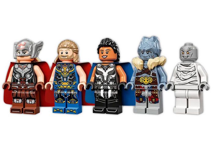 - Include minifigurinele Thor, Puternicul Thor, Valkyrie, Korg si Gorr