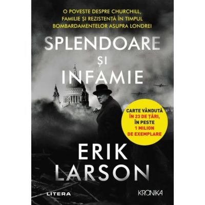 Erik Larson autorul bestsellerelor In gradina fiarelor si Siajul mortii ne ofera o cronica intima a lui Winston Churchill si a Londrei din timpul Blitz-ului un portret inspirat al curajului si artei de a conduce intr-o perioada marcata de crize fara precedent. In prima zi petrecuta de Winston Churchill in functia de prim-ministru Hitler a invadat Olanda si Belgia. Polonia si Cehoslovacia cazusera deja iar evacuarea de la Dunquerque era la doar doua saptamani distanta. In urmatoarele 12 luni Hitler va purta o campanie de bombardament neobosita omorand 45 000 de britanici. Lui Churchill i-a revenit sarcina de a pastra tara unita si de a-l convinge pe presedintele Franklin Roosevelt ca Marea Britanie era un aliat pretios si dispus sa lupte pana la capat. In Splendoare si infamie Erik Larson ne arata in detalii cinematografice cum i-a invatat Churchill pe britanici arta de a fi neinfricati . Este o poveste despre maiestrie politica dar este si o drama domestica intima care se desfasoara in decorul resedintei oficiale a primului ministru Chequers in refugiul sau din timpul razboiului Ditchley unde el si anturajul mergeau cand era luna era mai stralucitoare si amenintarea bombardamentelor era mai mare si desigur in Downing Street 10 in Londra. Documentandu-se din jurnale documente originale de arhiva si rapoarte de informatii pana nu demult secrete unele date publicitatii foarte recent Larson pune la dispozitie noi lentile pentru a intelege cel mai negru an din istoria Londrei vazut prin experienta zilnica a lui Churchill si a familiei sale sotia sa Clementine fiica lor cea mai mica Mary care se revolta impotriva instinctului de protectie de pe timpul razboiului al parintilor sai fiul lor Randolph si sotia lui frumoasa dar nefericita Pamela amantul Pamelei un chipes emisar american si consilierii lui Churchill la sfatul carora apeleaza in momentele cele mai grele. Splendoare si infamie duce cititorii departe de disfunctiile politice din prezent si inapoi intr-o vreme a conducerii adevarate cand in fata ororilor fara sfarsit elocventa curajul si perseverenta lui Churchill au unit o tara si o familie. Una dintre cele mai bune carti de pana acum ale lui Erik Larson ... perfect sincronizata cu momentele pe care le traim. Time Tipul de lectura care te tine cu sufletul la gura exact cum ti-ai dori sa fie toate cartile de istorie dar rareori sunt... Bill Gates Cunoscutul istoric Erik Larson a comis-o din nou. In timp ce am citit aceasta carte m-am tot intrebat ce semnifica valul de emotie cu care ma luptam cateodata fizic... Andrew Roberts Cartea lui Larson ne ofera o delicioasa felie din viata unuia dintre cei mai mari oameni de stat. The Wall Street Journal Utilizand remarcabil de abil jurnale intime dar si documente publice unele proaspat puse la dispozitia publicului Larson a transformat cronica bine-cunoscuta a 12 luni agitate din mai 1940 in mai 1941 intr-o carte deopotriva proaspata si emotionanta. The New York Times Book ReviewSpecificatii