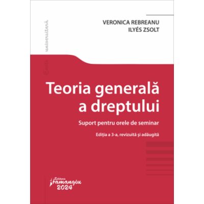 Volumul Teoria generala a dreptului. Suport pentru orele de seminar editia a 3-a revizuita si adaugita adresat cu precadere studentilor din anul I de studiu la Facultatea de Drept din cadrul Universitatii Babes-Bolyai Cluj-Napoca completeaza lucrarea Teoria generala a dreptului. Curs pentru studentii anului I editia a 3-a revizuita si adaugita cu scopul de a oferi reperele principale de predare-invatare-evaluare a acestei discipline. Suportul pentru orele de seminar asigura dincolo de acumularea cunostintelor juridice de baza si competente de interpretare aplicare adaptare la situatii reale in care informatia juridica insusita la modul teoretic este departe de a fi suficienta. Prin provocarea studentilor de a raspunde la intrebari si teste grila prin clivajarea conceptelor si definirea termenilor si institutiilor juridice se pun bazele cristalizarii unor aptitudini de exprimare indispensabile oricarui jurist care se respecta. La finele fiecarei teme propuse in Suportul pentru orele de seminar se afla teste si teste grila similare celor de la examen. La orele de seminar pe baza discutiilor vor fi identificate analizate si argumentate raspunsurile corecte. Motivul pentru care lipseste o anexa cu raspunsurile corecte consta in intentia de a obliga studentul sa gandeasca singur si evitarea insusirii mecanice a raspunsurilor. Asadar prin intermediul suportului pentru orele de seminar se urmareste pe baza structurii rezumative a tematicii propuse prin intermediul exemplelor de intrebari de autoverificare si teste grila prin intermediul extraselor din diferite acte normative facilitarea insusirii informatiilor si familiarizarea studentilor cu modalitatea de examinare o baza terminologica pentru studierea celorlalte discipline juridice precum si cu perspectivele pe care le ofera absolvirea unei facultati de drept. Veronica Rebreanu este lector la Facultatea de Drept a Universitatii Babes Bolyai Cluj Napoca. Ilyes Zsolt este cadru didactic asociat la Facultatea de Drept a Universitatii Babes Bolyai Cluj Napoca.Specificatii