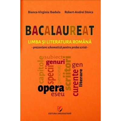 Bacalaureat. Limba si literatura romana - prezentare schematica pentru proba scrisa este o carte pentru adolescentul de astazi. Reprezentarea schematica aduce o eleganta simplitate pentru a asimila cat mai repede si mai usor punctele-cheie ale textelor literare necesare la examen puncte pe care le poti dezvolta intr-un eseu original privind tema si viziunea despre lume dar si relatia dintre doua personaje sau particularitatile de constructie a unui personaj. De asemenea paginile acestei carti prezinta o modalitate eficienta de organizare a informatiei si ofera un tipar de elaborare a unui eseu pentru fiecare text intr-un limbaj usor accesibil. Continutul cartii se adreseaza si celor care au o pasiune pentru disciplina limba si literatura romana dar si celor carora informatia le este necesara doar pentru a-si urma propria lor pasiune.Specificatii