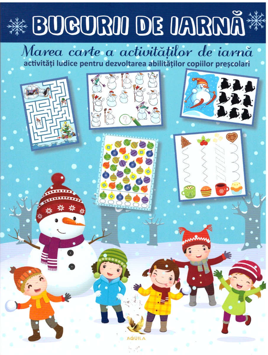 Activitatile distractive ale volumului de fata ofera copiilor un mod placut si educativ de a-si ocupa serile lungi de iarna. De asemenea, aceasta carte este mai mult decat o carte de activitati traditionala! Activitatile destinate prescolarilor au fost alese de catre un profesor, astfel incat invatarea sa poata fi facuta prin joaca. Si cum joaca este preferata celor mici, nu exista o modalitate mai buna de invatare decat prin joc!