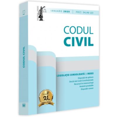 Editia a 23-a (revizuita) a lucrarii, Codul civil: ianuarie 2025, ingrijita de prof. univ. dr. Dan Lupascu si tiparita pe hartie alba de calitate superioara, contine textul Codului civil actualizat, imbogatit cu dispozitii de aplicare, decizii ale Curtii Constitutionale, recursuri in interesul legii, hotarari prealabile, numeroase dispozitii conexe si referinte legislative deosebit de utile.