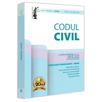 Editia a 22-a (revizuita) a lucrarii, Codul civil: septembrie 2024, ingrijita de prof. univ. dr. Dan Lupascu si tiparita pe hartie alba de calitate superioara, include ultimele modificari aduse prin: Legea nr. 116/2024; Legea nr. 122/2024; D. C. C. din 9 iulie 2024.
