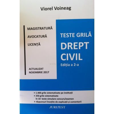 Drept civil. Teste grila pentru magistratura, avocatura si licenta. Editia a II-a Noiembrie 2017 (Viorel Voineag)