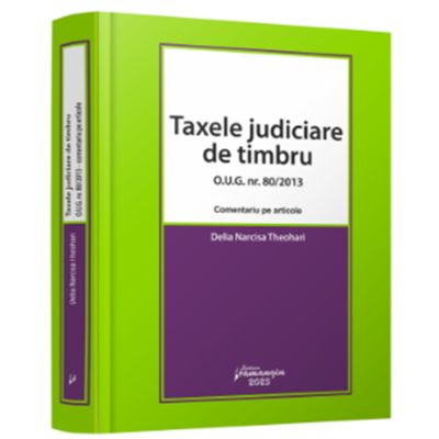 O. U. G. nr. 80 2013 privind taxele judiciare de timbru constituie fara putinta de tagada un act normativ deosebit de folosit in practica judiciara dat fiind faptul ca cererile deduse spre solutionare instantelor judecatoresti in majoritate sunt supuse platii unei taxe judiciare de timbru drept cost al serviciului judiciar ce urmeaza a fi prestat. Cunoasterea si intelegerea de catre participantii in proces a dispozitiilor ce reglementeaza taxele judiciare de timbru prezinta o importanta deosebita avand in vedere sanctiunea procedurala severa a carei incidenta este determinata de netimbrarea unei cereri in cuantumul prescris de lege si anume sanctiunea nulitatii cererii. Astfel judecatorul are indatorirea de a asigura respectarea dispozitiilor legii inclusiv in privinta taxelor judiciare de timbru verificand modul de timbrare a cererilor ce i-au fost repartizate spre solutionare si daca este cazul dispunand masurile necesare in ipoteza unei netimbrari sau timbrari insuficiente a cererii autorul cererii nu isi poate proteja dreptul subiectiv sau o alta situatie juridica pretinsa prin intermediul acesteia decat in masura in care isi indeplineste obligatia privind atasarea la dosar a dovezii achitarii taxei judiciare de timbru potrivit legii partea adversa are la dispozitie o aparare procedurala respectiv exceptia de netimbrare sau dupa caz de insuficienta timbrare a cererii de natura sa conduca in ipoteza admiterii acesteia la refuzul demersului procesual indreptat impotriva sa. In paginile acestei lucrari cititorii vor gasi in mod facil gratie unei structuri bine concepute o analiza clara si aprofundata a tuturor articolelor din O. U. G. nr. 80 2013 continand indicarea regulilor de baza in stabilirea cuantumului taxelor judiciare de timbru aplicarea acestor reguli la numeroase cazuri particulare de cereri in justitie prin oferirea unor exemple multiple de calcul amanuntit al taxelor judiciare de timbru aferente acestora in majoritatea cazurilor pentru corecta stabilire a taxei judiciare de timbru a fost necesara decelarea cu prioritate a anumitor aspecte de drept substantial sau procesual prezentarea de solutii cu argumente concise si solide in rezolvarea problemelor de practica judiciara in materie propunerea de modele de rezolutii si minute incidente in practica judiciara in aplicarea O. U. G. nr. 80 2013 descrierea in detaliu din perspectiva unui judecator a intregului mecanismul procedural vizand masurile ce se impun a fi dispuse in aplicarea acestei ordonante prezentarea opiniilor doctrinare exprimate in materie precum si a solutiilor si a anumitor considerente cuprinse in deciziile obligatorii ale Inaltei Curti de Casatie si Justitie si ale Curtii Constitutionale explicarea in detaliu a regulilor procedurale ce se impun a fi respectate de catre cei carora le revine obligatia de plata a taxei judiciare de timbru si a cailor procedurale puse la dispozitia acestora in materia analizata.Specificatii