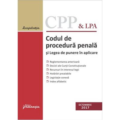 Codul de procedura penala si Legea de punere in aplicare. Actualizat 26 octombrie 2017