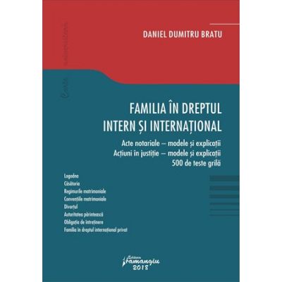Familia in dreptul intern si international. Acte notariale. Modele si explicatii Actiuni in justitie. Modele si explicatii 500 de teste grila (Daniel Dumitru Bratu)