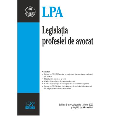 Prezenta editia a Legislatiei profesiei de avocat cuprinde actele normative de baza actualizate la zi - Legea nr. 51 1995 pentru organizarea si exercitarea profesiei de avocat cu ultimele modificari legislative respectiv Legea nr. 32 2023 Legea nr. 50 2023 si Legea nr. 89 2023 - Statutul profesiei de avocat actualizat cu Hotarare nr. 281 2022 publicata in M. Of. nr. 101 din 6 februarie 2023 - Legea nr. 72 2016 privind sistemul de pensii si alte drepturi de asigurari sociale ale avocatilor actualizata cu Legea nr. 99 2023. Sunt incluse si codurile deontologice al avocatului roman respectiv al avocatilor din Uniunea Europeana.Specificatii